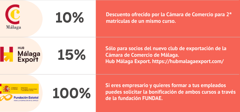 Descuento ofrecido por la Cámara de Comercio para 2ª matrículas de un mismo curso.